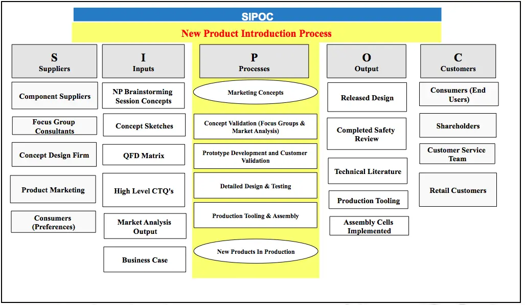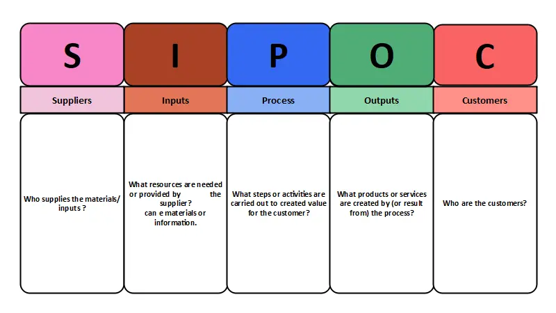 In reality, SIPOC is a process mapping and augmentation method that uses a SIPOC diagram to describe the inputs and outputs of one or more processes.
