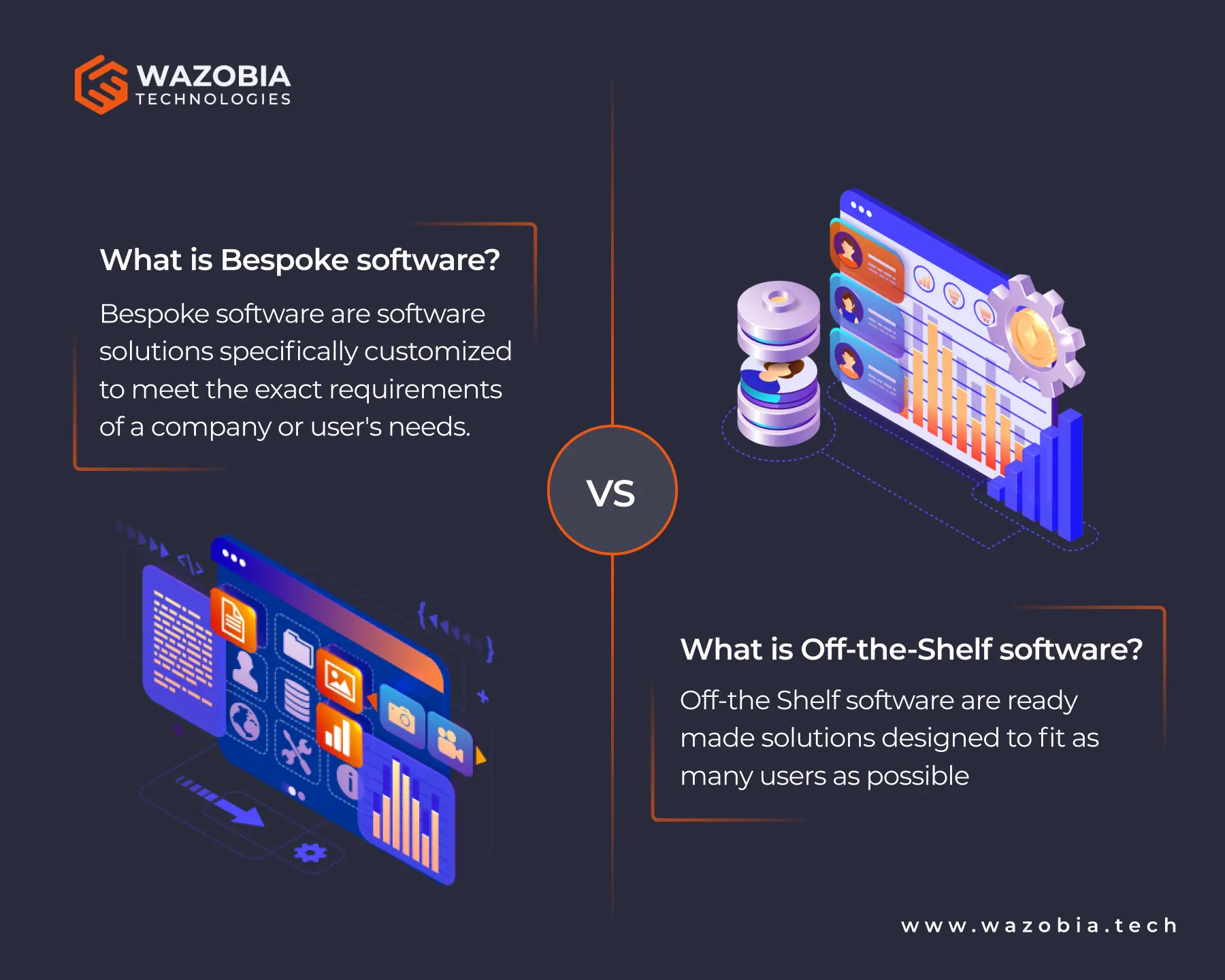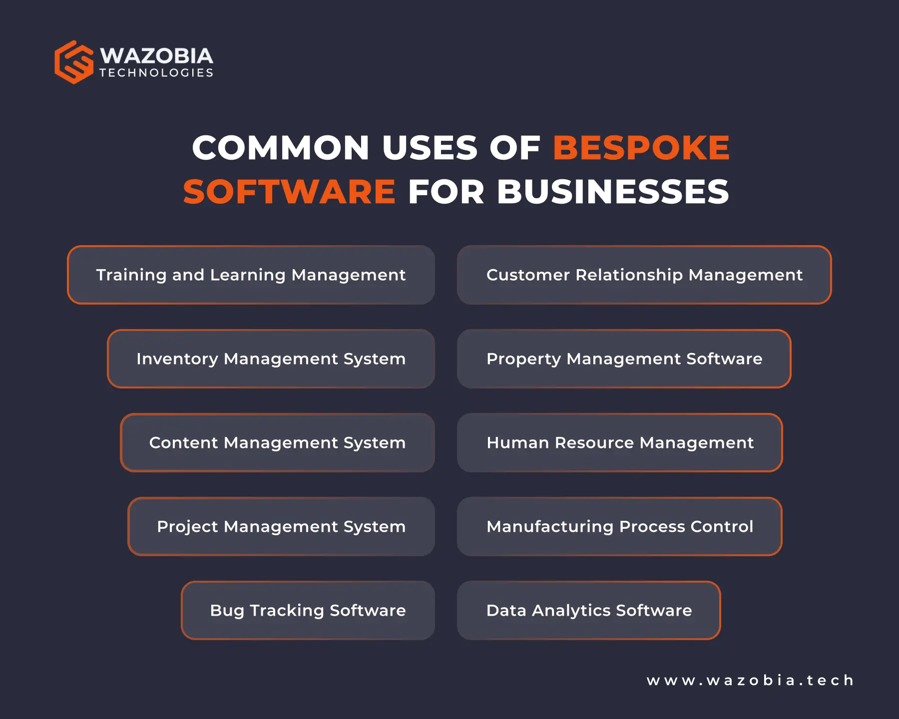 Having discovered the potential benefits of enhancing your business with custom software, you can get in touch with us at Wazobia Technologies. We develop robust custom software according to your business needs and offer maintenance till your team is up to speed.